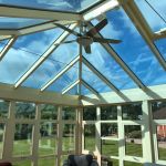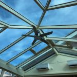 A conservatory we recently completed at Severn Hospice in Shrewsbury. Built in fully thermally broken aluminium, coloured in a relaxing Ral 1015 light ivory. The roof has two electrically operated vents for natural ventilation, utilizing temperature and rain sensors for fully automatic or manual operation. The large area of glazing on three sides give panoramic views of the beautiful garden area. The double doors give nice easy access in and out of the building.